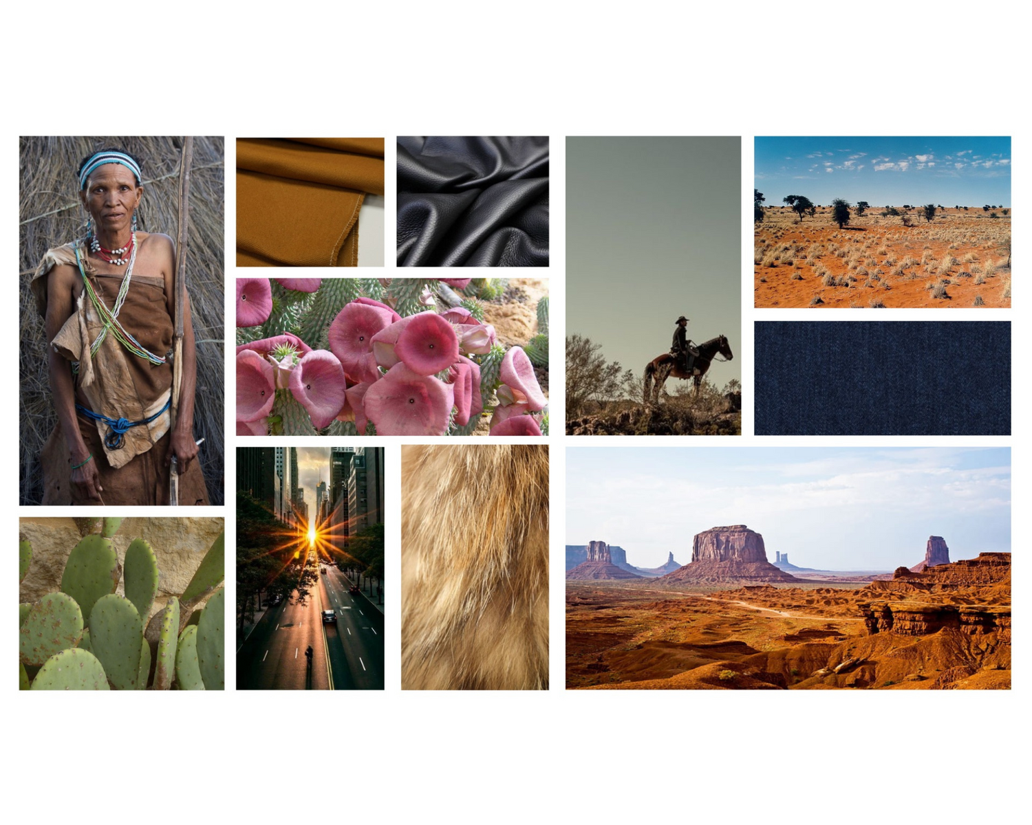 The Autumn/Winter collection “Invigorate” evokes feelings of warmth and simplistic beauty drawn from dessert land of the Wild West and clothing of the Kung Bushman in the Kalahari Desert. The deep-rooted traditions and resources of the Kung people emulate the designs reflected in the collection. The colour palette is derived from the striking rugged terrain and natural materials such as leather, fur, denim and canvas provide a sense of timeless durability. Native cacti such as the Hoodia and the Prickly Pear are mirrored in the round curves and straight lines of the modern silhouettes to create a clean cut, sophisticated look that focuses on bringing renewed life to the garments from age-old heritage.